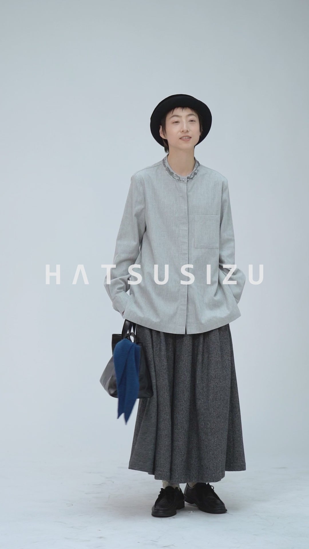 暮色ブルー×グレーの経緯で織り上げたヘリンボーン生地。ウールの温もりと芯のあるハリを備えつつ、ほどよくソフトな風合いです。ハイウエストの八分丈にタックを効かせ、スカートのように揺れる表情を実現。パンツのはきやすさとスカートのエレガンスを両立しました。ウエスト内側のプリント見返しがさりげないアクセント。身頃から脚までコットン裏地で、肌あたりも快適です。