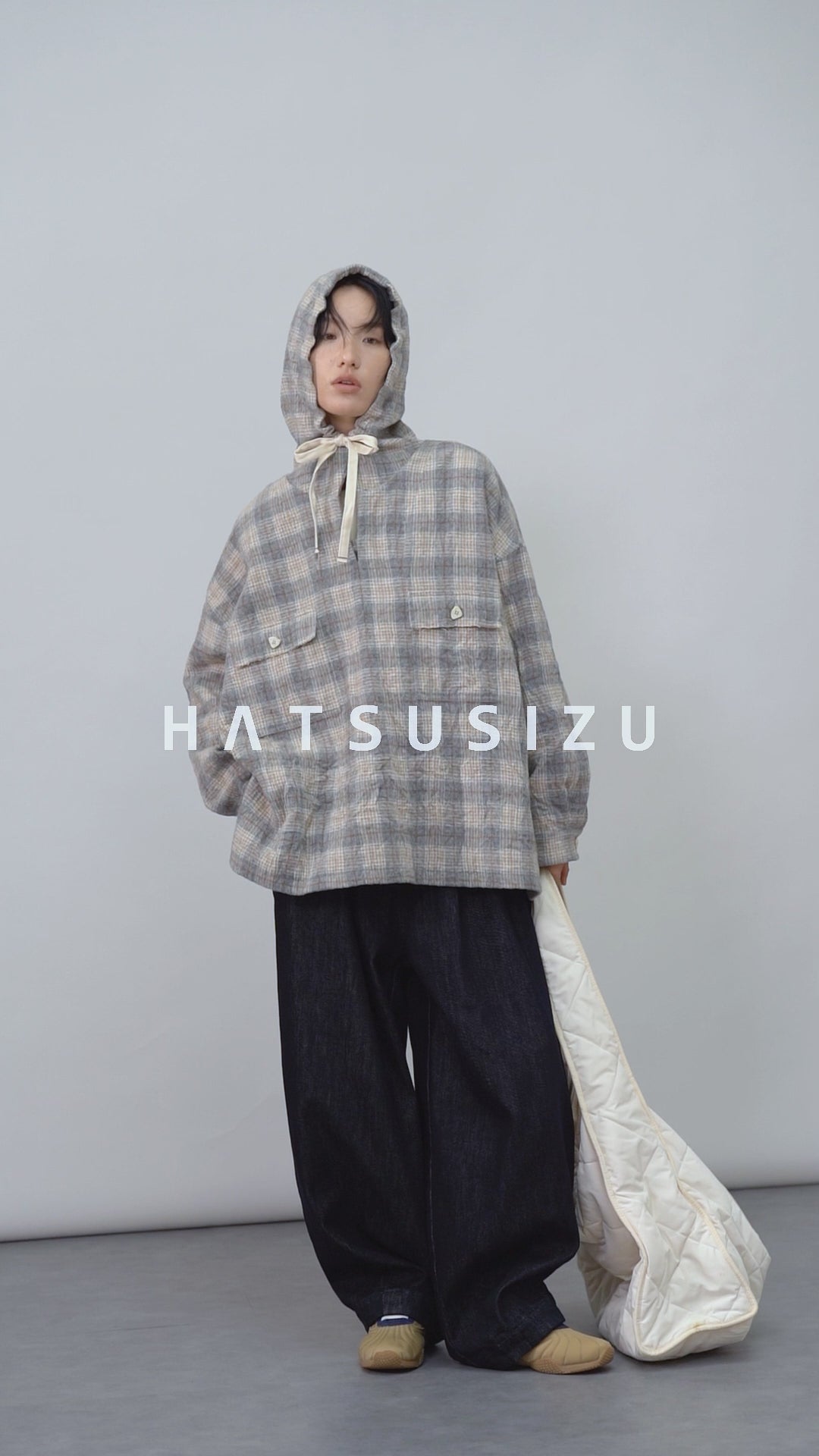 (51072) ウールブレンド ワッシャーチェックフーディー**