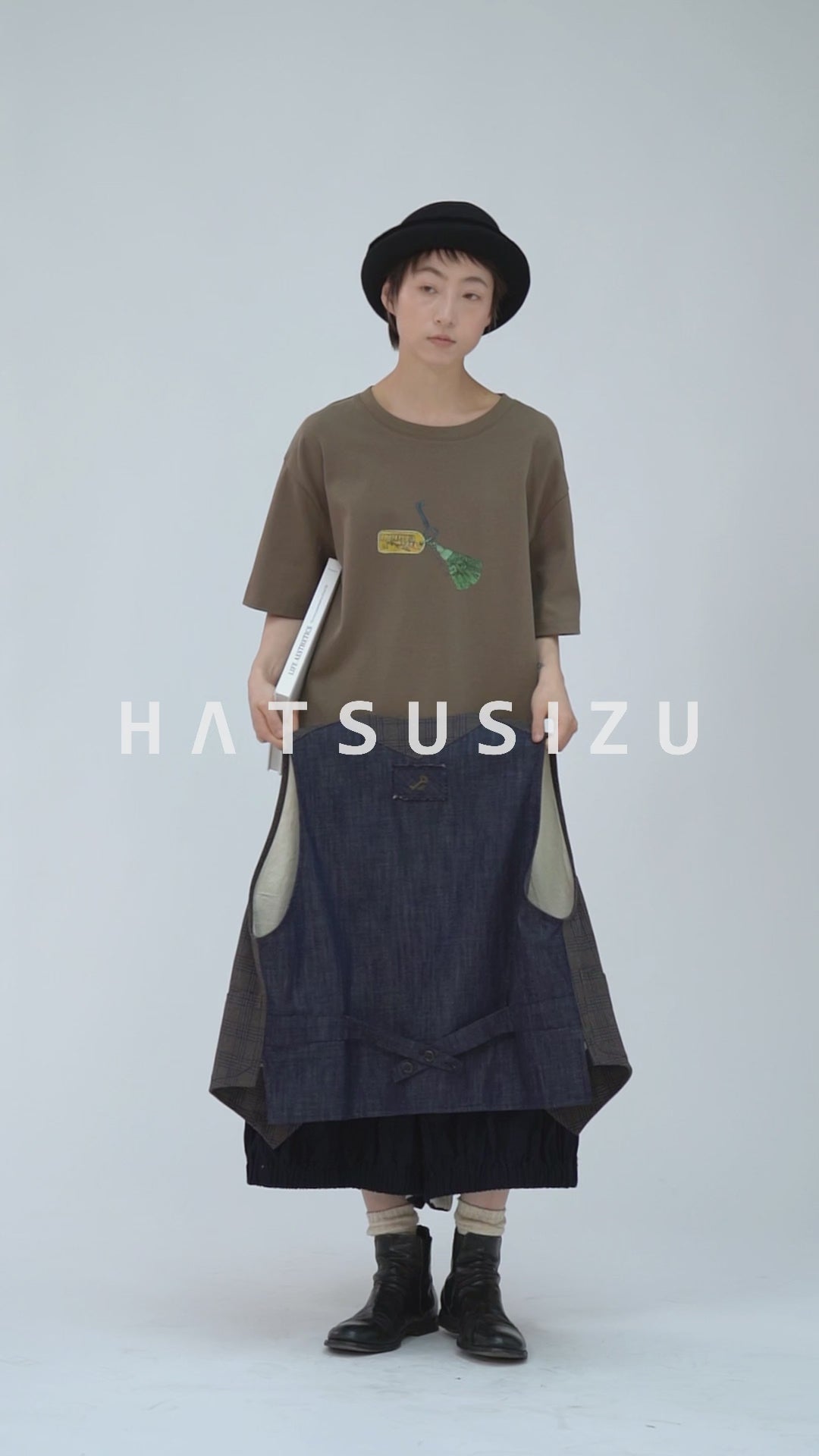タデ藍の葉から抽出した藍で染色。素朴なコットン糸を経緯2色の交織にし、さらに極細メタルファイバーをブレンド。浸漬→酸化→洗いを重ねることで、澄んだインディゴと自然なシワ表情を引き出しました。ウエスト内側にはアーモンドカラーの別布を配し、さりげない配色アクセントに。ふんわりとしたパンプキン型で腰回りをカバーしつつ、脚線はすっきり見せる一本です。