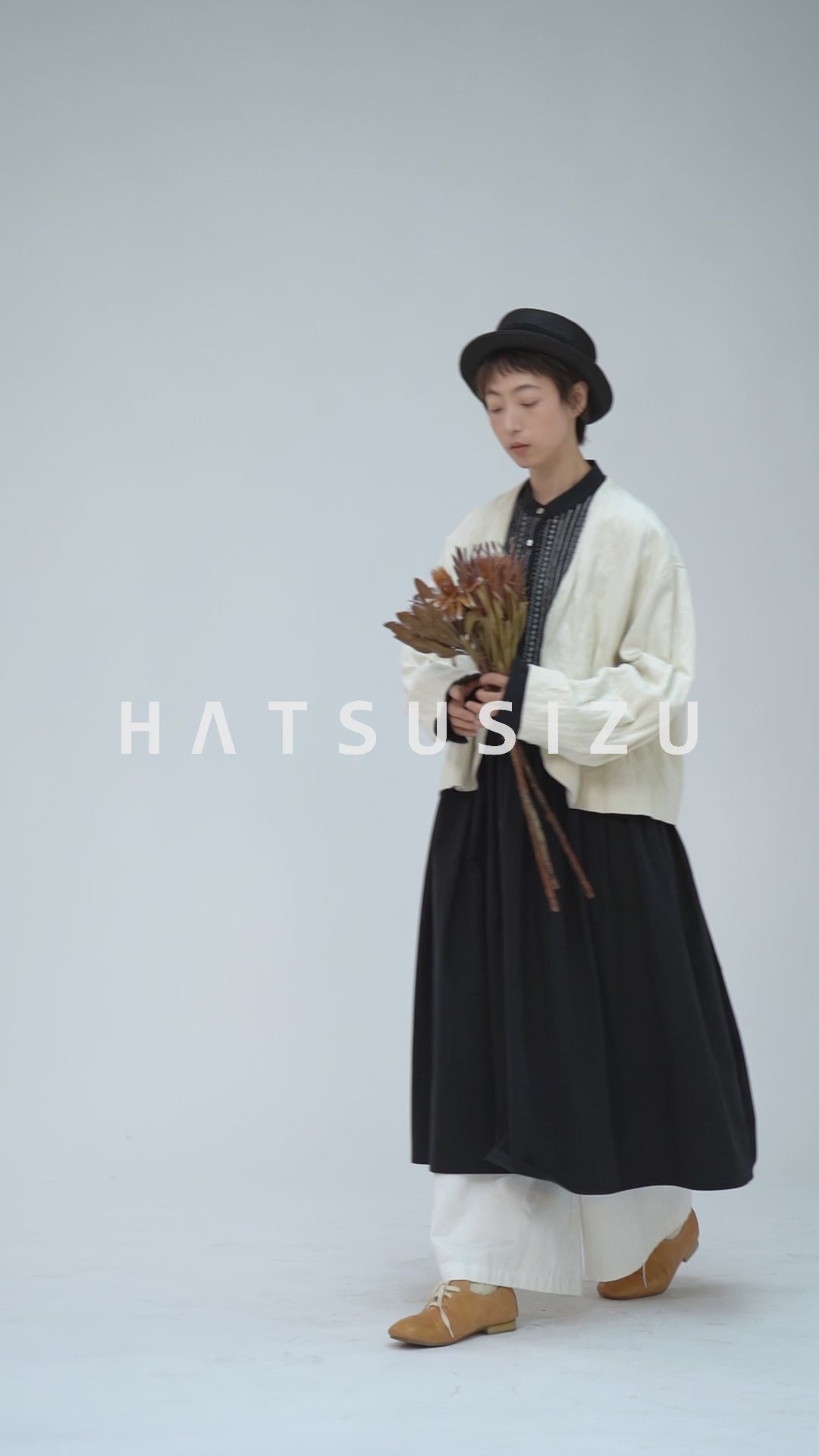 金属糸をブレンドしたコットン生地が、ほどよいハリと美しいシワ表情をキープ。型崩れしにくく、動くたびにさりげない微光沢が宿り、装いに控えめなラグジュアリー感を添えます。ショート丈のHラインで軽やか&端正に。異素材のB生地をランダムに貼り合わせたアップリケがアクセントとなり、コラージュのような奥行きと遊び心をプラスします。