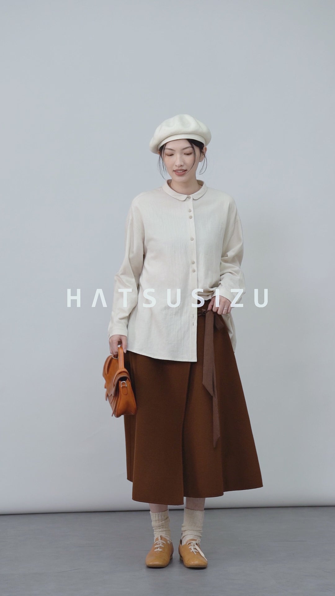 • デザイン:丸衿に、フロントの小さなボタンをリズミカルに配置し身頃の枝葉刺繍がさりげないアクセントで、無地感覚の着やすく秋冬のベースシャツとして活躍します。🧵